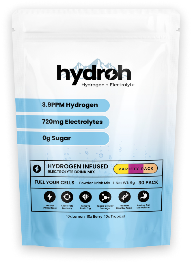 Hydrogen electrolytes combine traditional electrolyte minerals with molecular hydrogen, which acts as a powerful antioxidant to support hydration, reduce oxidative stress, and enhance recovery.