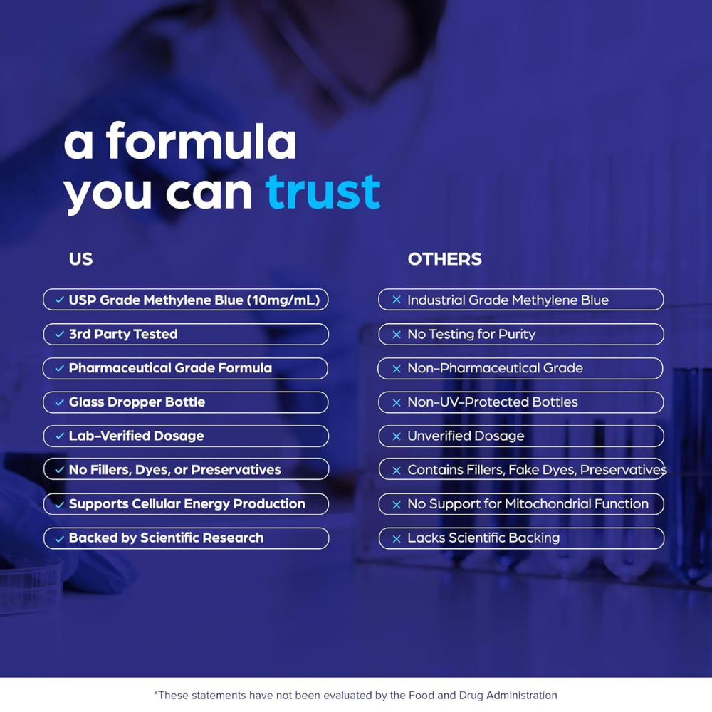 Most supplements cover symptoms. Methylene Blue works at the source.