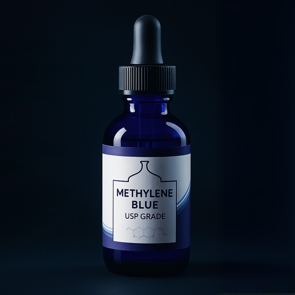Methylene Blue is a compound originally developed as a dye and later used medically. At low doses, it supports mitochondrial function, increases cellular energy (ATP), and acts as an antioxidant. It's commonly used to improve focus, mental clarity, and overall brain health.